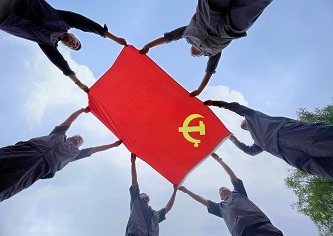 一個支部一座堡壘,一名黨員一面旗幟。今天黨旗在手、黨徽在胸、黨旗飄揚、赤誠永固、我們和黨旗合影,是對黨最崇高的敬意。