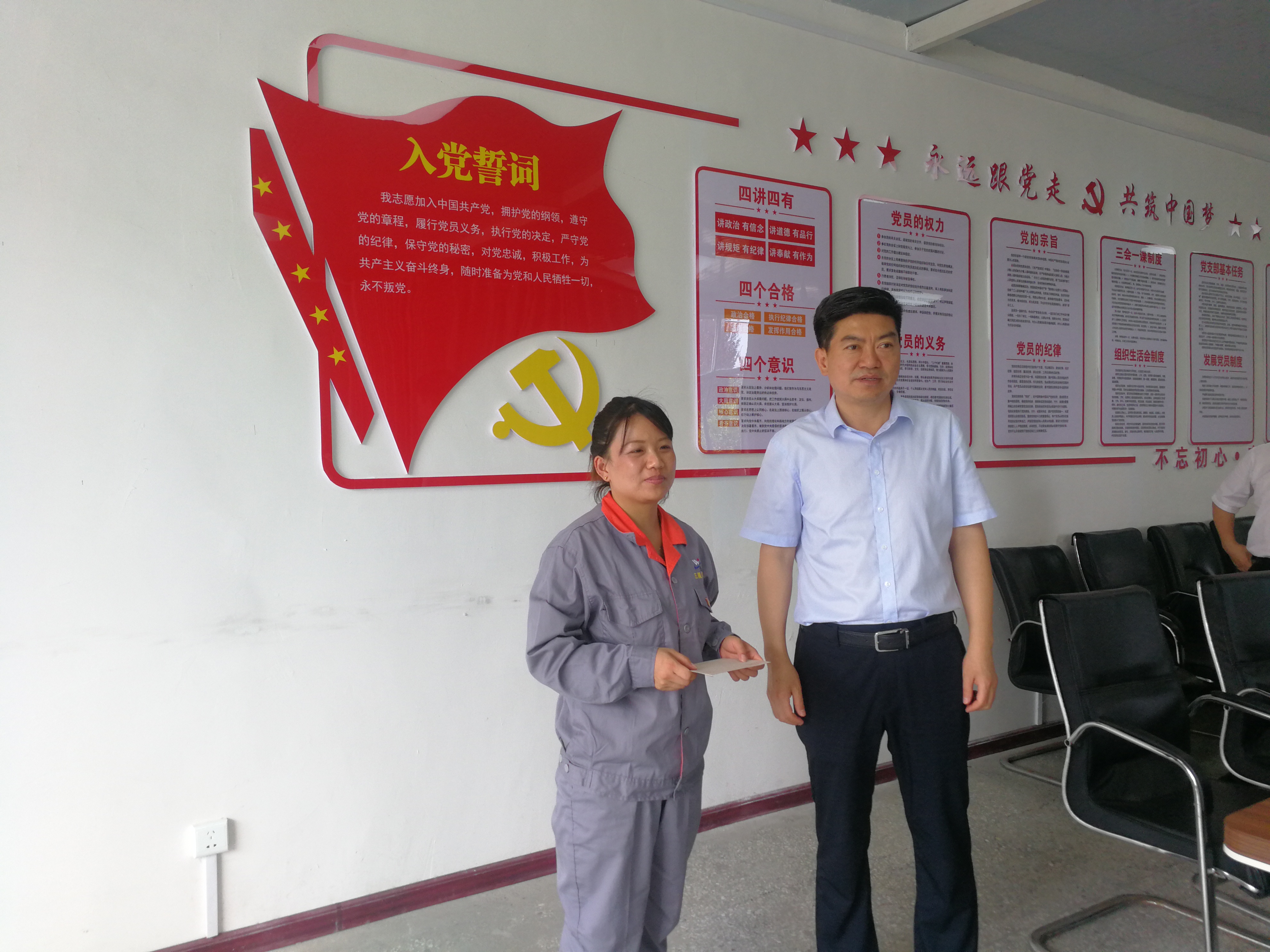 在五星高新黨支部書記李自林的陪同下走訪了中共安徽五星高新材料有限公司黨支部,慰問困難黨員,并送上慰問金。