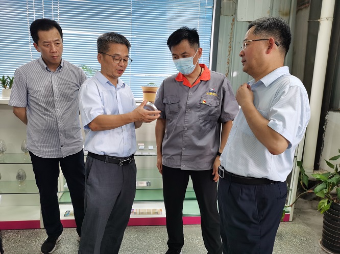 楊峻松處長認真聽取企業負責人的介紹,表示在全球疫情的大環境下,對企業在過去一年來所取得的成績給予了 充分肯定,并對 企業