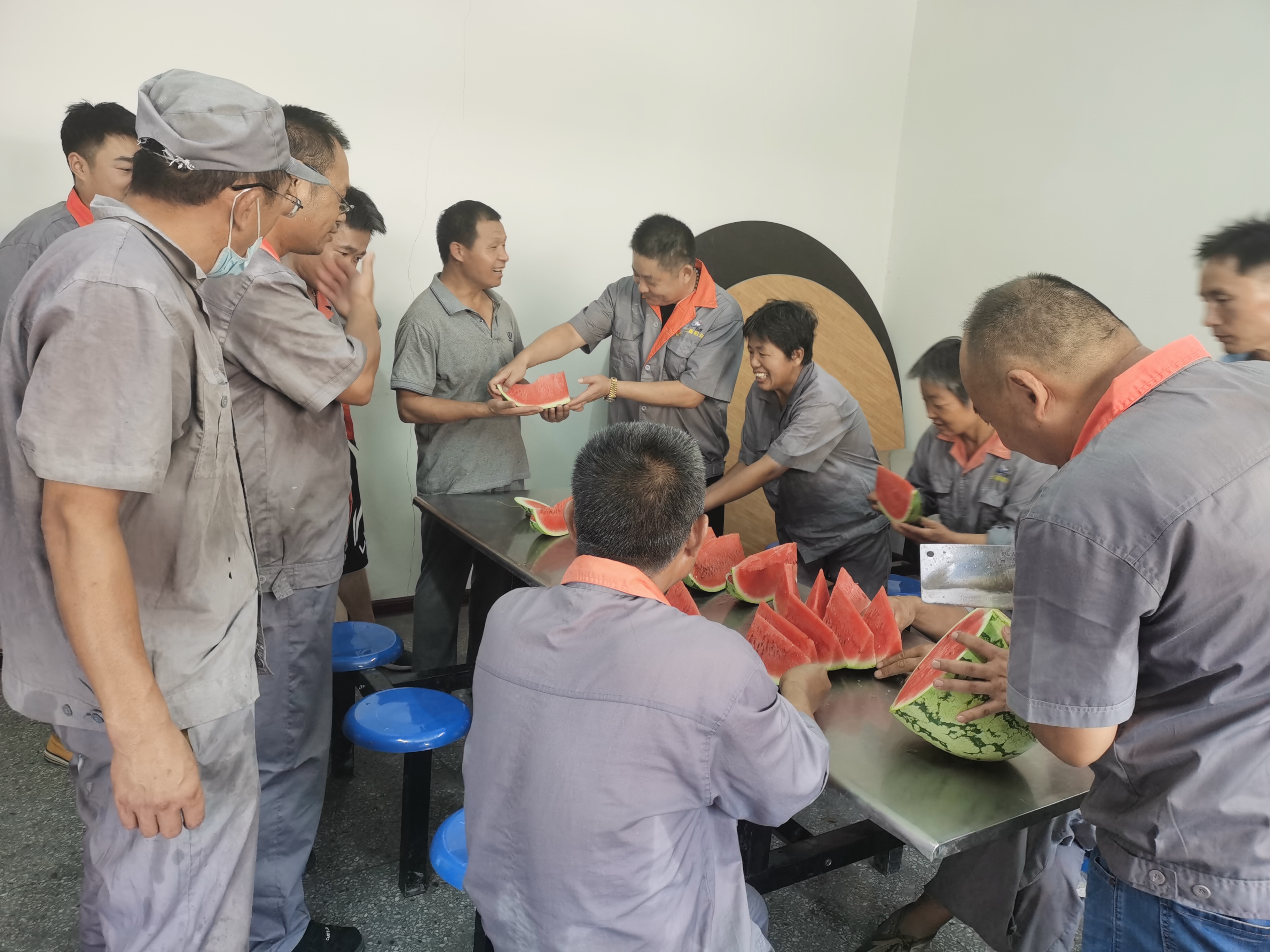 公司總經理劉建民、副總經理孟建君、牛海燕為不畏高溫酷暑、堅守在生產一線的廣大員工送上西瓜、花露水等防暑降溫物品。